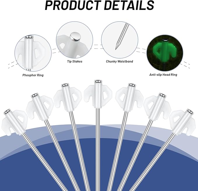 - 【Wide Use】 camping stakes can be used for all kinds of activities in life, whether it is camping or travelling, its portability and firmness is very superior, it can act on the ground such as sand, snow or rock layers; meanwhile, it can be a must-have tool for your family's air model decorations in festivals such as Halloween or Christmas.