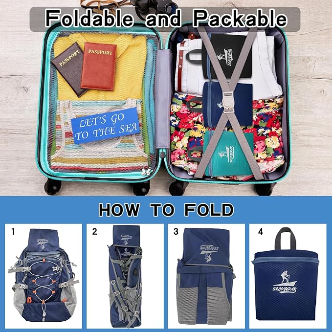 - 40 LITER HIKING BACKPACK COMFORTABLE DESIGN: Lightweight foldable backpack weighs only 1.3 pounds and has a breathable padded back that helps reduce fatigue on long hikes. Ergonomically designed, this women's hiking backpack is both labor-saving and durable. The adjustable chest buckle perfectly distributes the weight of the pack, keeping it stable and centered. The chest buckle is designed as a survival whistle for quick and easy access in case of emergency