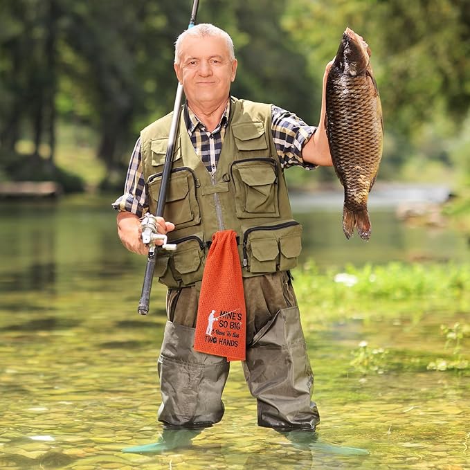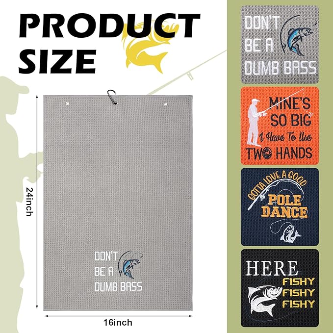 - Interesting Patterns: our fishing towel features 4 various embroidered theme patterns, embroidered with funny words like" Don't be a fool" and" Mine is too big, I have to use two hands", these towels make a fun gift for fishing enthusiasts