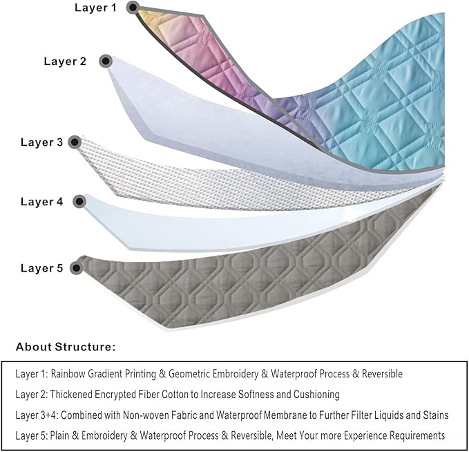 - Patchwork Rainbow Ombre Printed Dog Bed Blankets: the Second Layer Uses Thickened Encrypted Fiber Cotton to Increase Softness and Cushioning, the Thirdand Fourth Layers are Combined with Non-woven Fabric and Waterproof Membrane to Further Filter Liquids and Stains. A Multifunctional Furniture Protective Coverfor Bed / Sofa / Table / Chair / Floor / Camping... Applicable Scene: Bedroom / Living Room / Bathroom / Indoor / Outdoor...and So On...