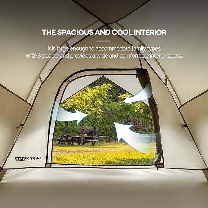 - 😉【Distinct Ventilation with Dual Doors & Mesh Windows】The pop up tent boasts a unique double-door design that combines ventilation and weather protection, ensuring privacy and a breathable, comfortable living space throughout your journey. The mesh windows offer excellent airflow while keeping insects at bay. With the rainfly removed, you can enjoy stunning views of the starry sky.