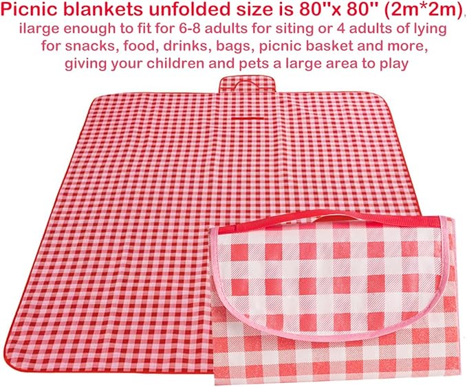 - 【Family Large Picnic Blanket】The ultra large size design of 80" * 80" provides you with sufficient usage space. This picnic mat can accommodate 3-4 people lying down or 6-8 people sitting on it simultaneously. Suitable for family outings or friends camping.