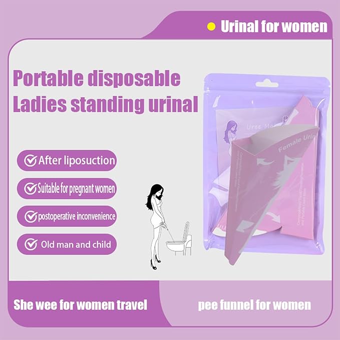 - The set contains: 30 pieces of female urinal, 7.3in long and 3.9in wide. Easy to use, you can put it in your pocket or bag anytime and anywhere. It is as small as a mobile phone, and it is very convenient to carry and store. It's a good gift for women.