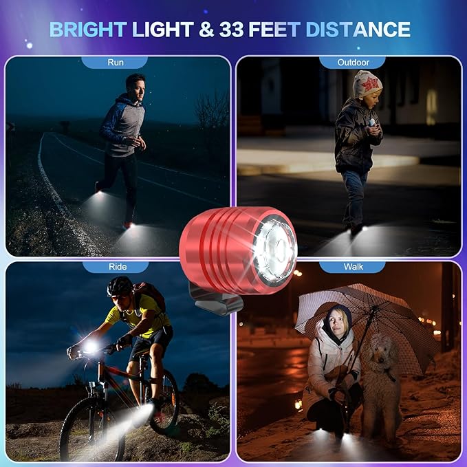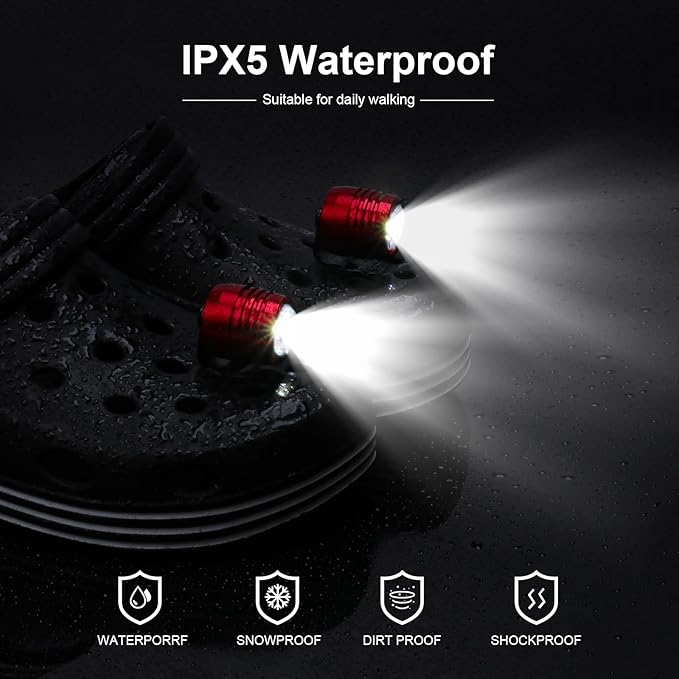 - Ultra Lightweight and Long Lasting: Feel free to wear these rechargeable headlights for croc during night walking, dog walking and parties. The 0.87oz ultralight weight is even lighter than pen, 2 charge usb cable included, you can charge the shoes light easily when need.