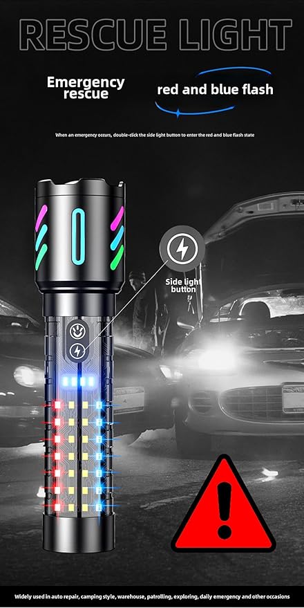- User-Friendly and VersatileđDesigned for easy handling, Our camping flashlight is suitable for many occasions. It also comes with a holster for easy storage and carrying on the go. Whether you're embarking on outdoor adventures, preparing for emergencies, or tackling household tasks at home, it's an essential tool you can rely on.
