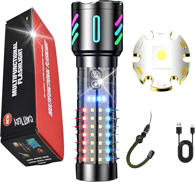 - ăWIDELY USED & OUTDOOR ESSENTIAL HANDHELD FLASHLIGHTSăThis rechargeable Flashlight for emergencies can be used as an emergency energy source to charge some common USB devices, such as cell phones, headphones, etc. Powerful Flashlights high lumens are not only suitable for daily use such as camping, night dog walking, night running, night fishing, night riding, hiking, but also for police night patrol, car maintenance and other workplace such as gas stations, charging stations, chemical labs, airports, warehouses, etc.