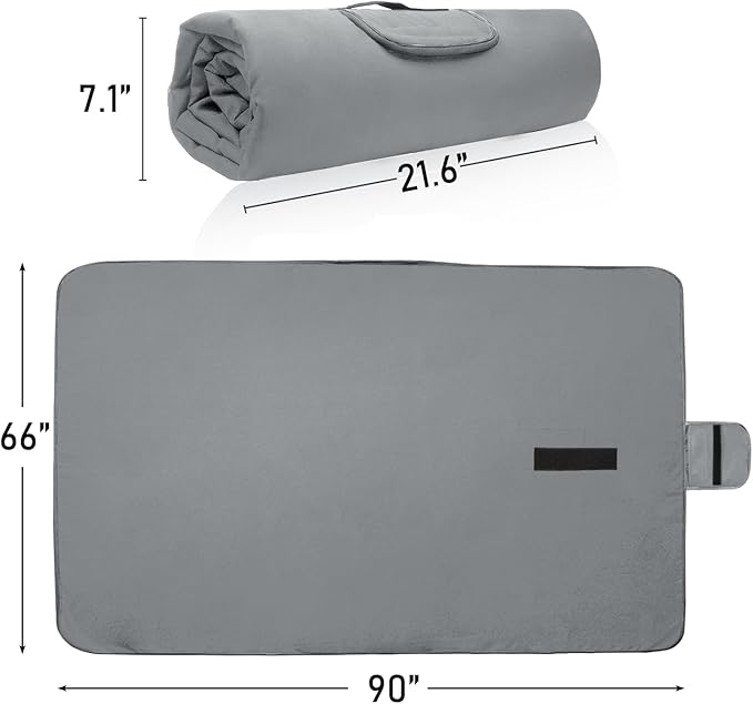 - PACKABLE & PORTABLE- It’s also easily foldable and packable, this compact waterproof throw blanket can be simply rolled up into a handled roll secured by a heavy-duty fastener, which is super easy to store.