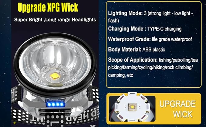 - <Weatherproof> Headlamp is IPX5 waterproof, which means it is protected against splashing or spraying water from any angle. Suitable for outdoor activities and sports, exploring, night walking, running, camping, mountaineering, cycling, fishing.