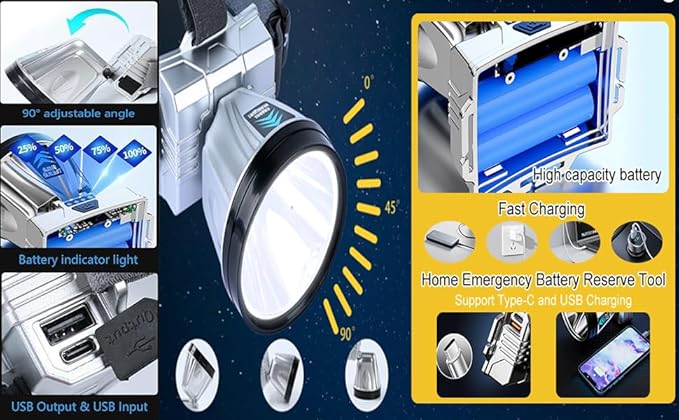 - <90° Adjustable> To ensure flexible lighting, our head lights is designed for 90° adjustable, so that you can see the full field of vision. And the hands-free headlamp provides bright and steady lighting while you work. The headlights for head use a soft and comfortable headband, a ergonomically designed headband that can be adjusted to fit different head sizes easily, suitable for both men and women.