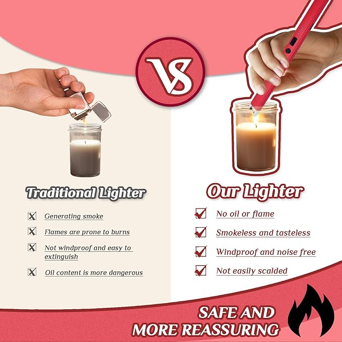 - [A fusion of exquisiteness and practicality] - Plasma lighter have no flames and do not produce pungent smells. Compared with traditional fuel lighters, they are safer and more practical. The lighters for candle is not only exquisite and simple in appearance, but also has a slender design that allows you to ignite the flame from a distance. It is an ideal choice for lighting scented candles, fireworks, and gas stoves.It is suitable for sending to your family and friends.