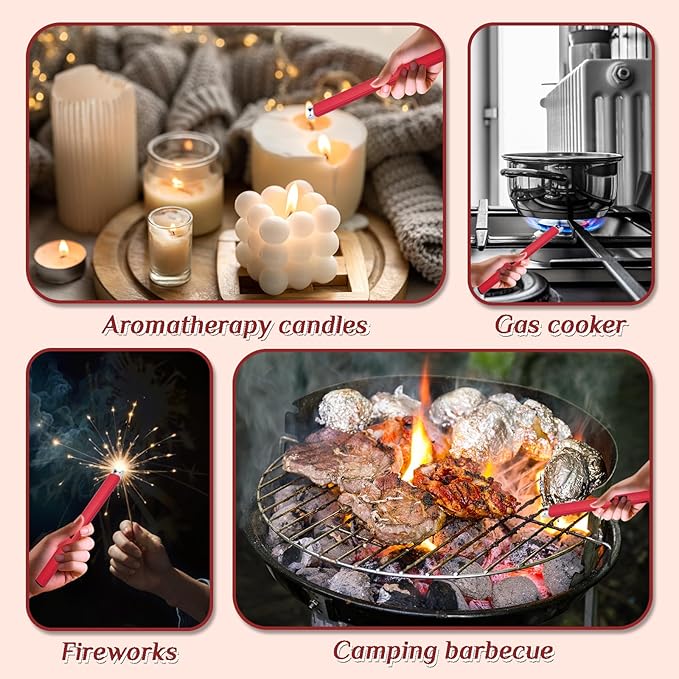 - [Your Outdoor Helper] - The long lighter adopts high-voltage pulse flameless arc technology, which is windproof and splashproof, and can be easily used even in bad weather outdoors. The small and lightweight design of the electric lighters rechargeable makes it easy to carry, whether it is traveling, camping or barbecue, it can easily cope with it. It can solve the problems you face outdoors and bring you a pleasant outdoor experience.