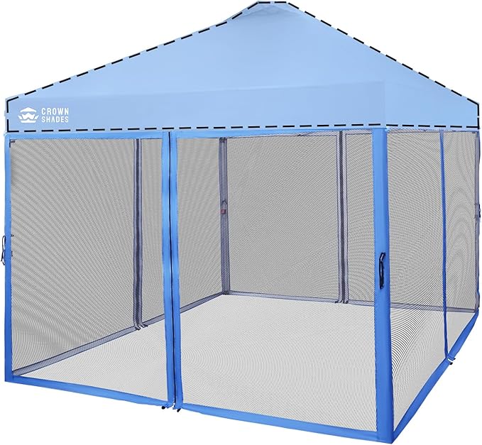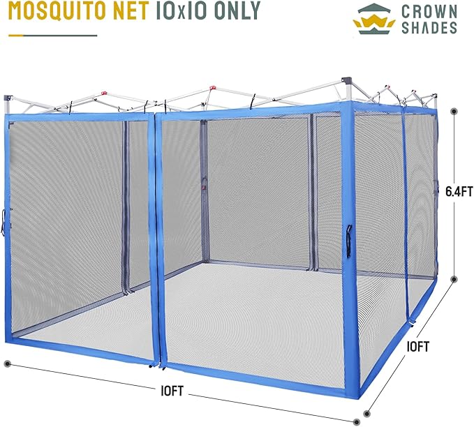 CROWN SHADES Gazebo Mosquito Net for 10 x 10 Pop Up Canopy - Patio Gazebo Mesh Sidewall with Zipper for Outdoor Tent, Garden and Backyard (4 Packs, Blue