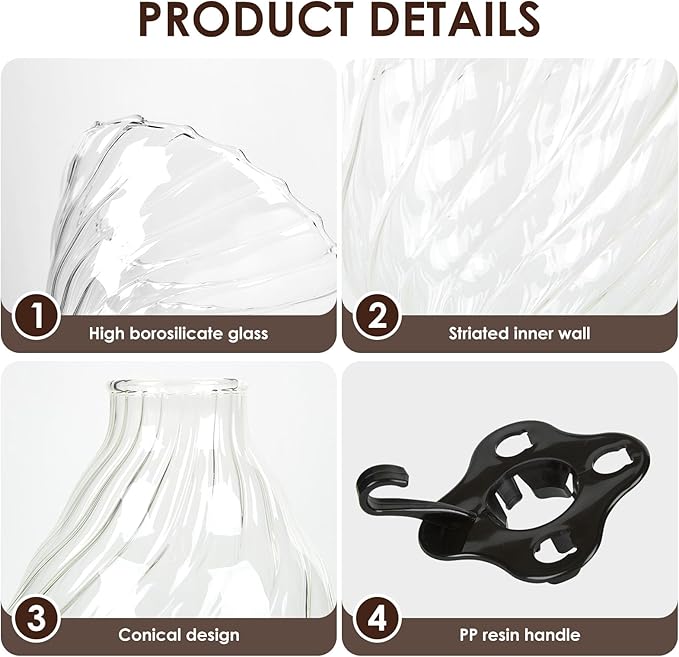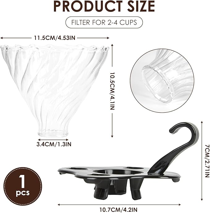- Crafted with a heat-resistant glass coffee cone body and a polypropylene holder for durability.