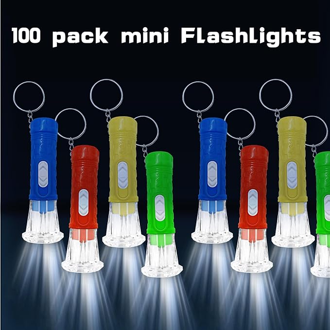 100 Pcs Mini Flashlight Keychains Bulk for Kids Assorted Colors Torch Keyring LED Bright Party Favors, Camping, Travel, Home or Office(4 Colors)