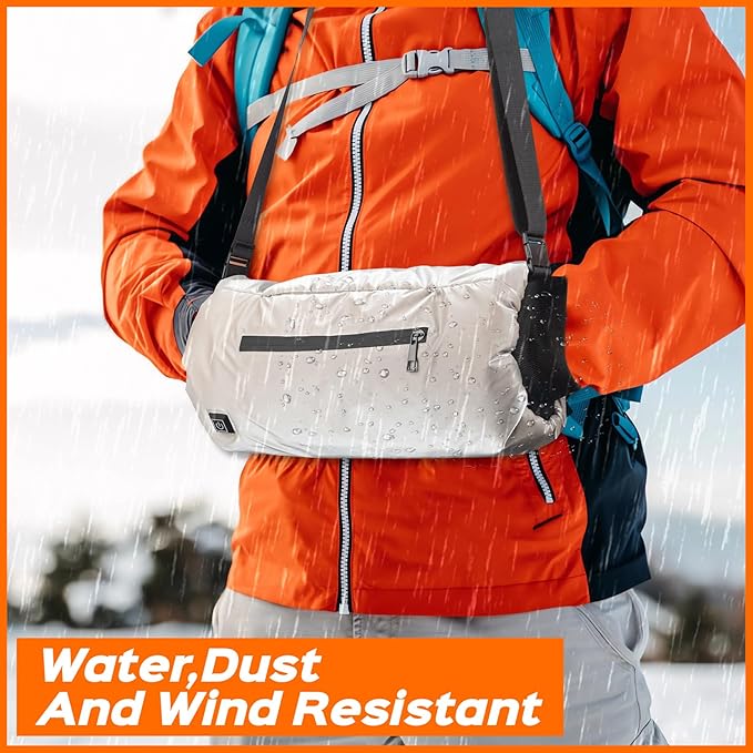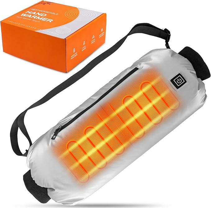 - 10000mAh RECHARGEABLE POWER BANK LONG LASTING HEATING - The electric heated hand warmer pouch is powered by 10000mAh large capacity rechargeable power supply, up to 15H continuous working time, so your whole hands in can be warm all day long. The rechargeable power bank can also charge your other electronic devices separately. Our heated hand warmer pouch solves your multiple daily needs.