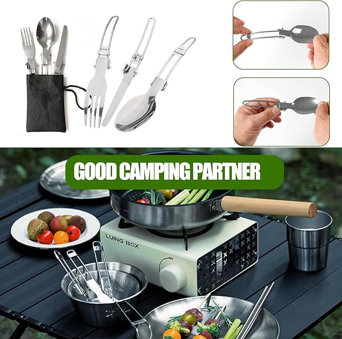 - 【Enjoy Outdoor Cooking 】 This awesome cookware kit is designed for anyone loves outdoor camping with families and friends. It is perfect for camping, backpacking, hiking, fishing, picnic, trekking, emergency preparedness, or as part of a survival kit. Highly recommend for a day trip or weekend trip. You can use it cooking, boil water, fry eggs, etc.