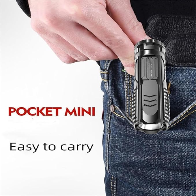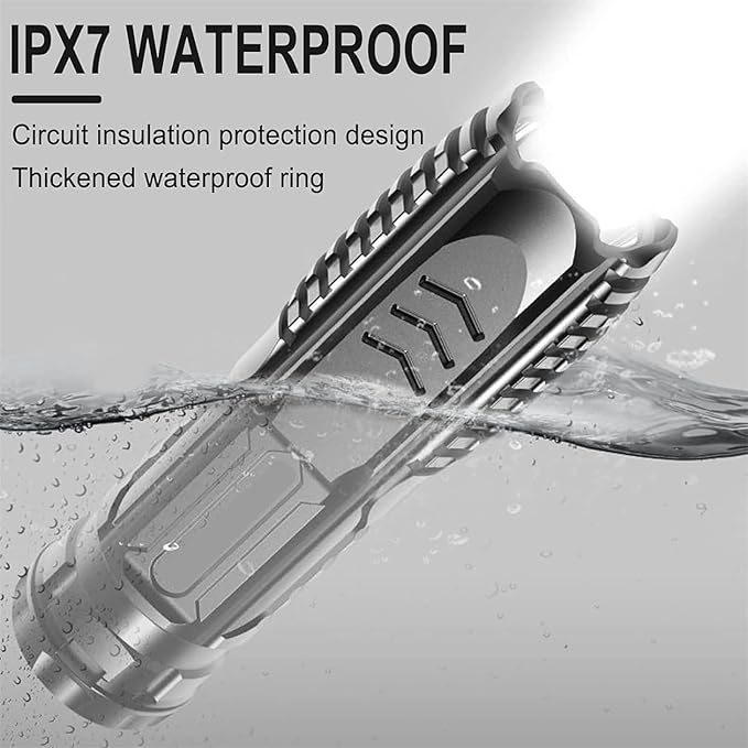 - 【IPX7 Waterproof and High-Strength ABS】The high lumen flashlight is made of durable high-strength ABS body, which is lightweight and compact and can withstand impacts up to 10 feet. The mini portable high-light flashlight is also non-slip, shockproof, waterproof and dustproof. The size is only 11.7 cm, which does not take up space and is easy to carry.