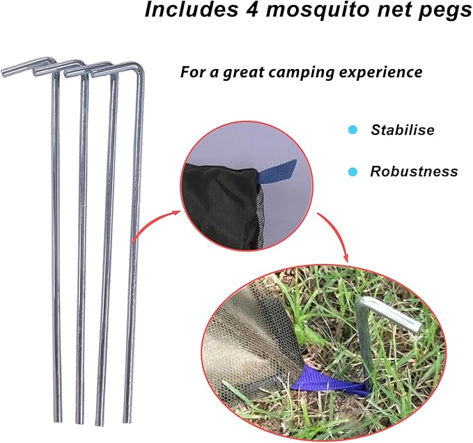 - Package Include : 1 x Mosquito Nets Tent and 4 x Retaining tools.Note : without Sleeping Mat
