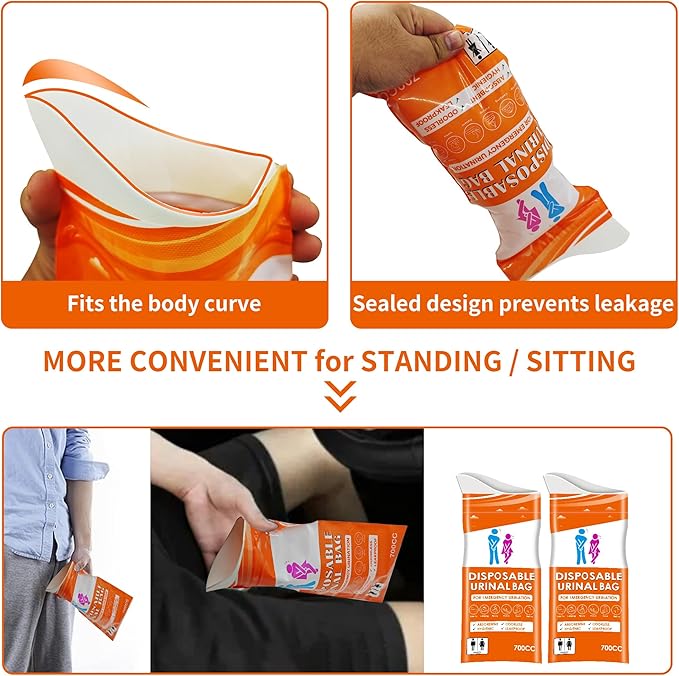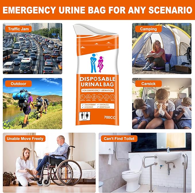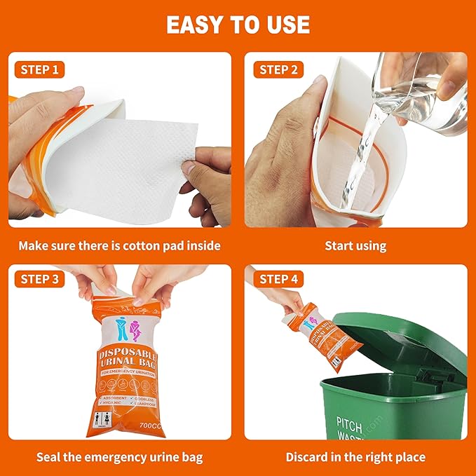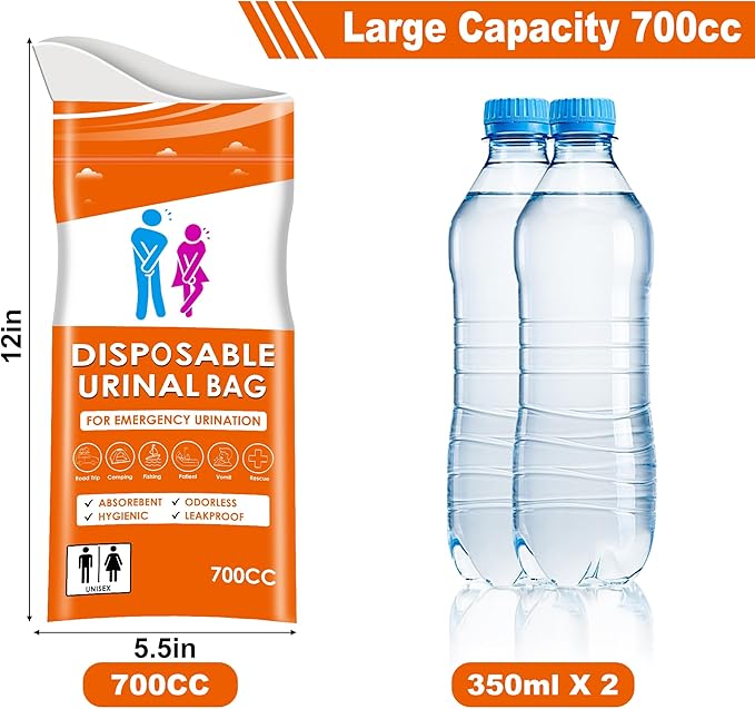 - MULTI-SCENARIO & MULTIFUNCTIONAL: A must-have outdoor essential urine bags for hiking, fishing, camping, traveling or biking, these emergency bags can also be used as mini toilets and barf bags on long bus trips. Unlike urine bottles or funnels, disposable urinals require no washing, are odorless when sealed, and can be sealed and disposed of in the trash after use.