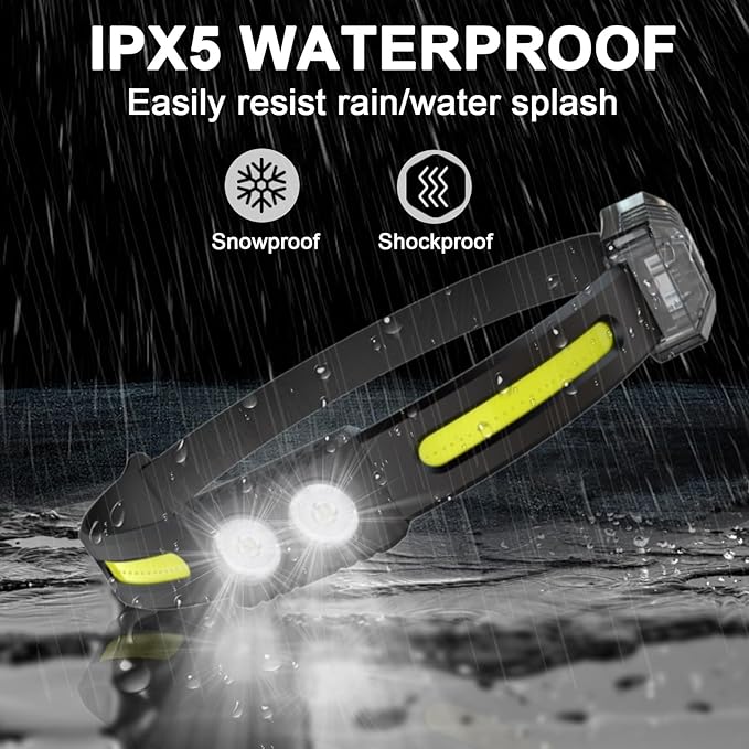 - Life grade waterproof, fearless of wind and rain: running headlamp Meet the IPX5 waterproof standard, effectively resist the invasion of rain and sweat, whether it is outdoor weather or daily household cleaning, it can ensure the normal operation of the headlights.