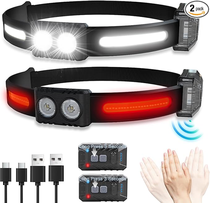 - Intelligent sensing, light up as soon as you wave your hand: head lamps led rechargeable Integrated with the latest sensing technology, no need to touch, with just a gentle wave, you can control the headlight switch, even if wearing gloves, you can easily operate, keep your hands clean, and let technology add infinite convenience to your outdoor activities.