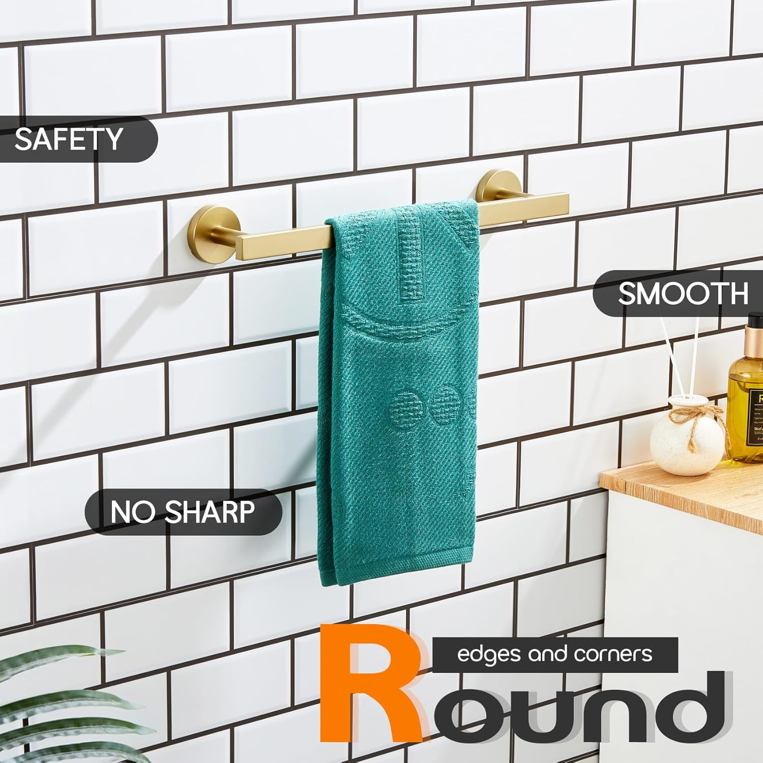 16 Inch Bathroom Towel Bar Bath Towel Rack Kitchen Towel Holder Towel Hanger Wall Mounted SUS304 Stainless Steel Brushed Gold AN4001GD-L16