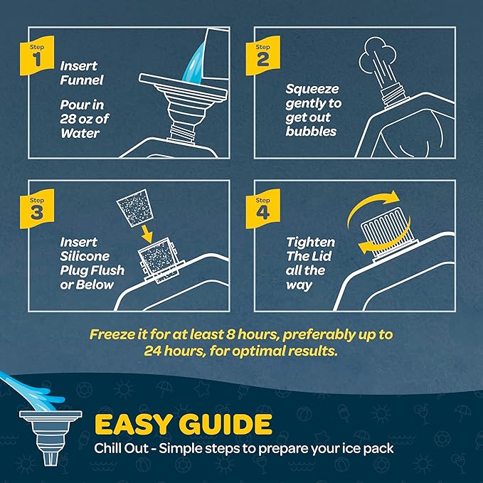 - User-Friendly: Add water using the funnel, shake, screw the cap on, and freeze. Reuse repeatedly! Made with non-toxic, BPA-free mix gel for safe and durable use. packs are puncture-resistant and leakproof, Follow the printed instructions for hassle-free use.