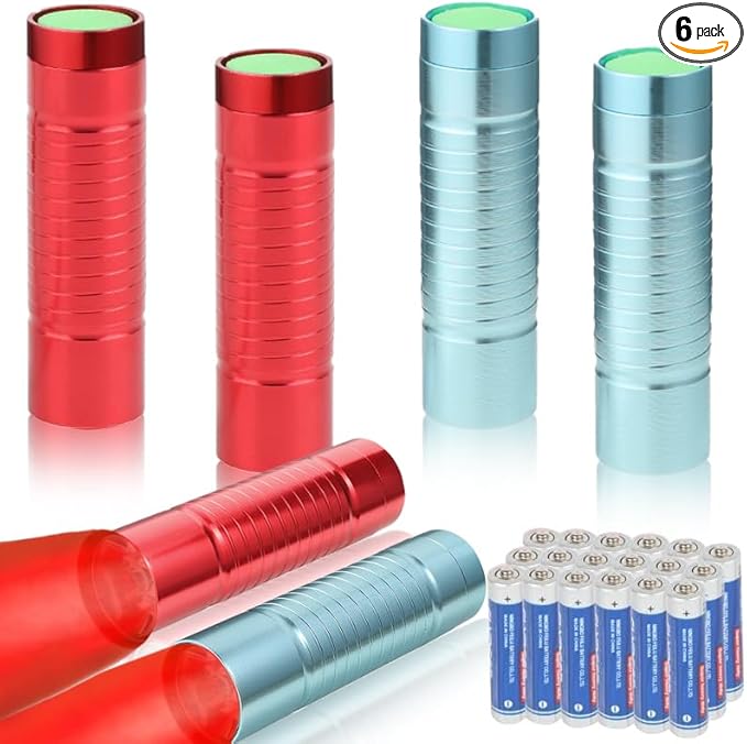 6 Pack Red Light LED Flashlight Mini, Red Flashlight Red Torch for Astronomy, Aviation, Night Observation and Animal Observation (3 Pack Blue+3 Pack red)