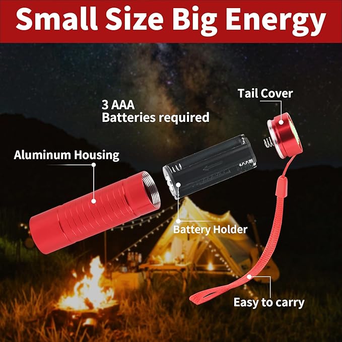 - Small and Long-Lasting: The red light size is 3.34in (8.48cm) and the red tail rope can be worn around the wrist at will, 3x AAA Batteries up to four hours of lighting, or normal use for several weeks (Batteries included)