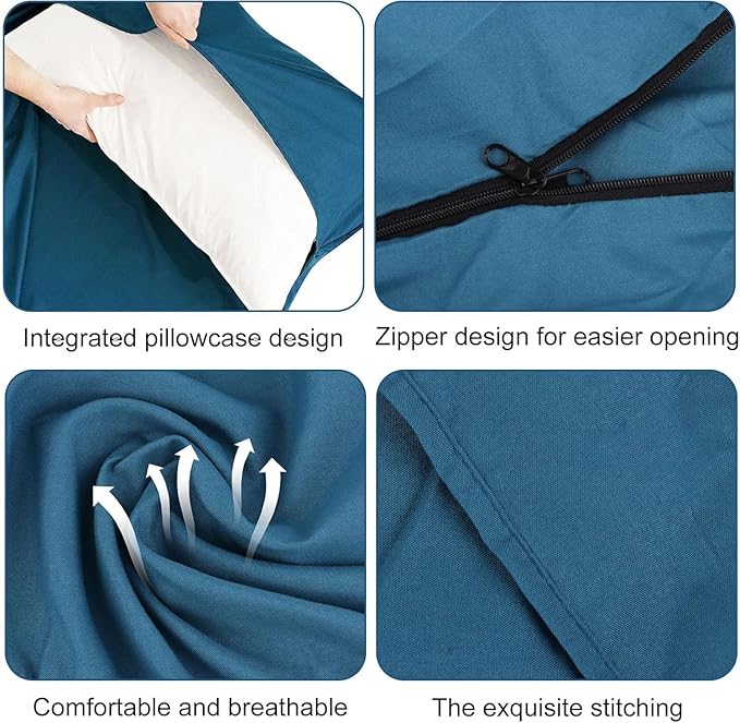 - TWO Zip design: the innovative pocket on the back not only keeps the cushion in place, but also does not come into contact with other sheets, ensuring hygiene and cleanliness. The multifunctional zip of the sleeping bag can be fully opened to get a large travel bed 86.6*70inch(220 *180 cm).