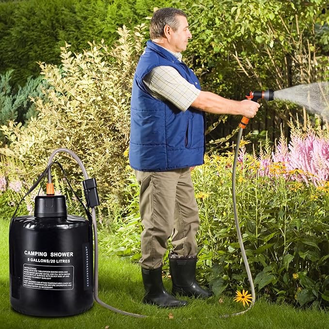 - ▶Lightweight and portable: Designed for adventurers, this outdoor shower is lightweight and easy to carry, so you can effortlessly enjoy the luxury of a warm shower on the beach, in the mountains or on the road.