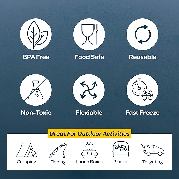 - Suitable for Outdoors: Our reusable ice packs are a perfect sidekick for every adventure, keeping food and beverages cold and essential for picnics, camping, trails, boating, fishing, gear for anyone planning a getaway, keeping food and drinks cold and fresh