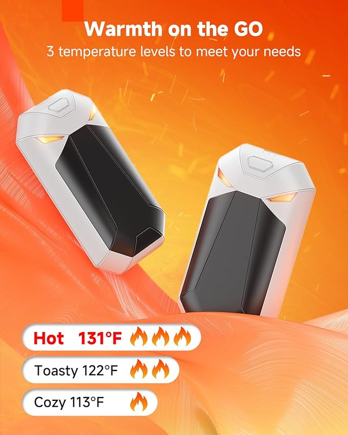 - 【2-in-1 Rechargeable Hand Warmers】- Powerful 8000mAh hand warmers with 2-in-1 design, allowing you to split them into two separate hand warmers, or combine them into one for easy storage. Sharing with loved ones is more convenient than ever.