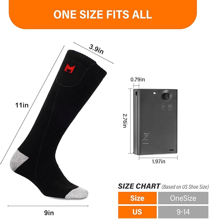 - 【Gift & Warranty】The winter battery socks is a considerate gift for your parents, friends and family. Fits for men 5-11, women 7-10. We offer 180 days warranty, please feel free to contact us if you meet any problem with the socks.