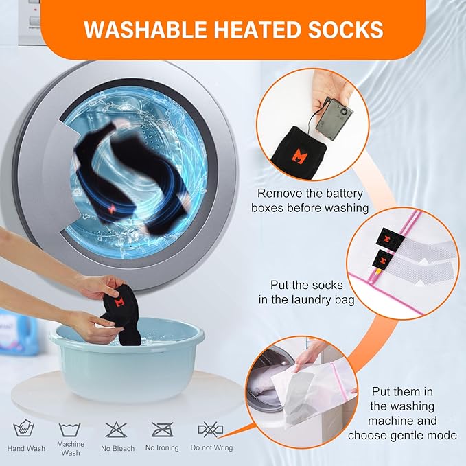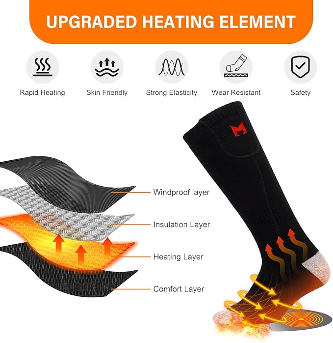 - 【Safety and Warm Your Feet】: Heating elements of the battery heated socks are made of insulated material, no worries about heating safty. Comfortable heating temprature will warm your cold feet in the cold winter.