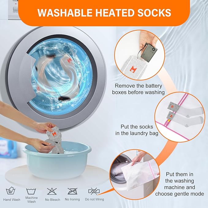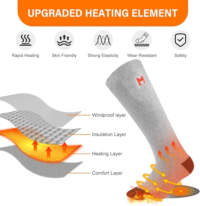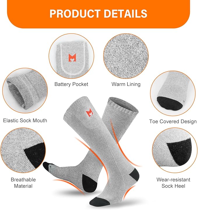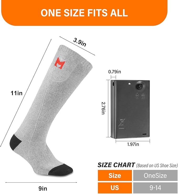 - 【Safety and Warm Your Feet】: Heating elements of the battery heated socks are made of insulated material, no worries about heating safty. Comfortable heating temprature will warm your cold feet in the cold winter.