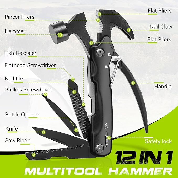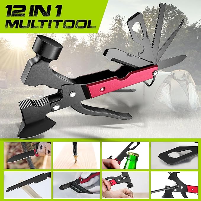 12-in-1 Multitool Hammer, Ideal Camping Companion ,Father's Day Treat, Unique Birthday Gift for Men,Versatile Gift for Him