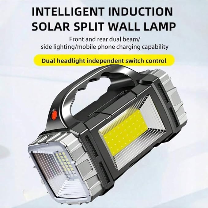 Solar Handheld Flashlights Spotlight Updated Rechargeable Double-Headed High Lumens Camping Essentials Lantern, 2 Light Modes Portable Searchlight