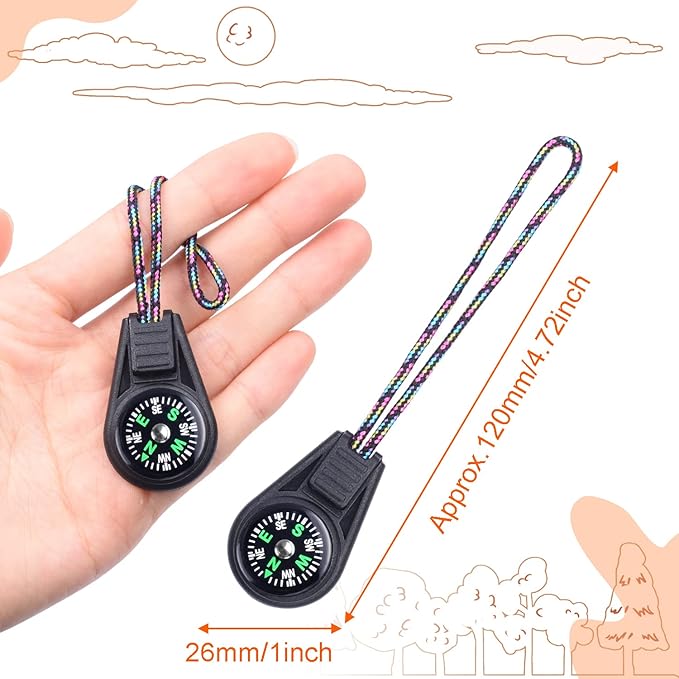 - Portable and Convenient: The kids compass is compact, non-slip texture handle and nylon lanyard. The design allows easy attachment to backpacks, keychains, and zippers, ensuring it is always accessible. Lightweight and practical, these mini compasses can be carried anywhere, perfect for camping, hiking, and even pirate-themed games.