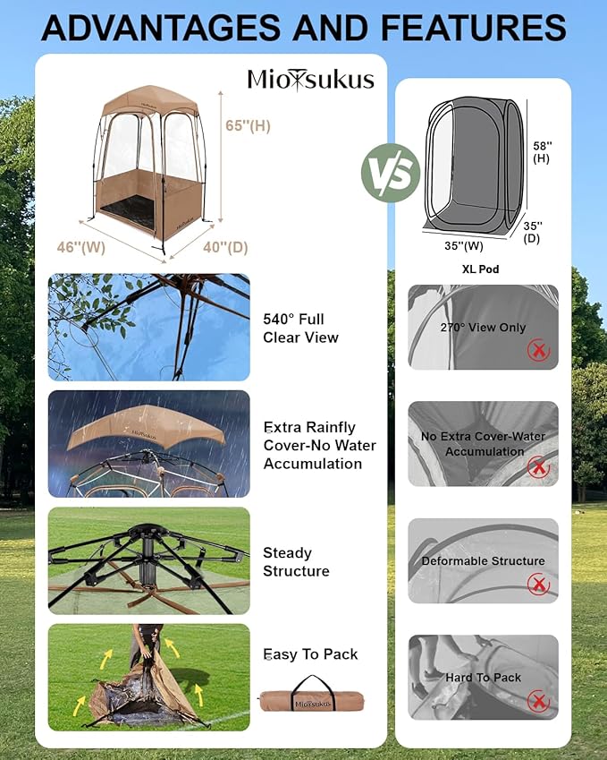 Sports Tent, Instant Weather Proof Pod, Pop Up Bubble Clear View Tent, Sports Pod with Extra Top Cover for Soccer, Football, Softball Games, and Other Outdoor Events, Baobrava, MioTsukus