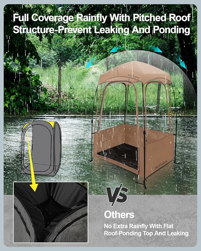 - γβοΈπππππ ππππππππππβοΈγ This sports pod tent equipped with a top rain cover for double-layer UV protection, you can enjoy additional sun protection during the summer, protect you from the wind and rain during winter. Also the water resistant PE floor keeps the floor and your personal belongings clean and dry.