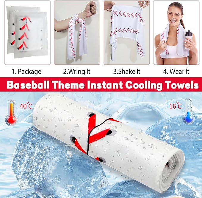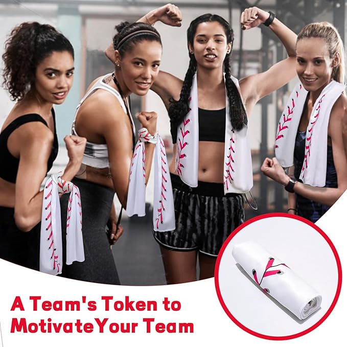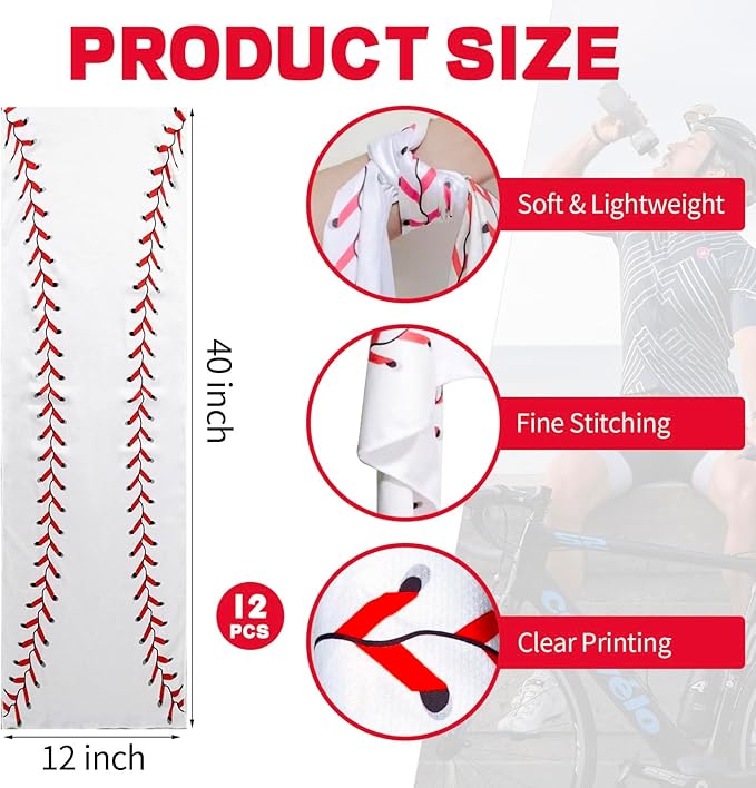 12 Pcs Cooling Towels, Breathable Chilly Towel, Individual Package 40"x12" Microfiber Towel for Coach Gift (White,Baseball)