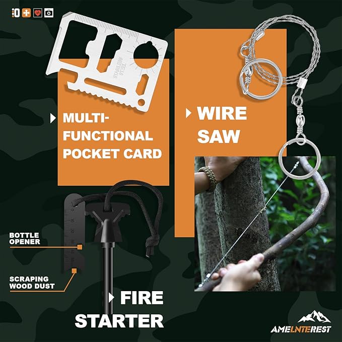 - ✅【All Weather, All Age, Multi-Purpose Survival Kit】From outdoor actions to general home and office needs, for the outdoorsman, preppers to boy scouts. With its comprehensive contents and coverage, you will be prepared anywhere you go.