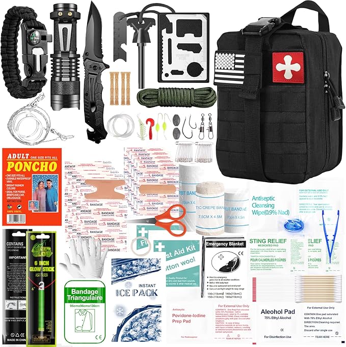 Survival Kits, 174Pcs Survival Gear First Aid Kit IFAK with Molle System Essential Camping Gear Emergency Medical Supplies for Car Fishing Hunting Outdoor Adventure