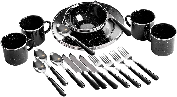 Stansport 24-Piece Enamel Camping Tableware Set