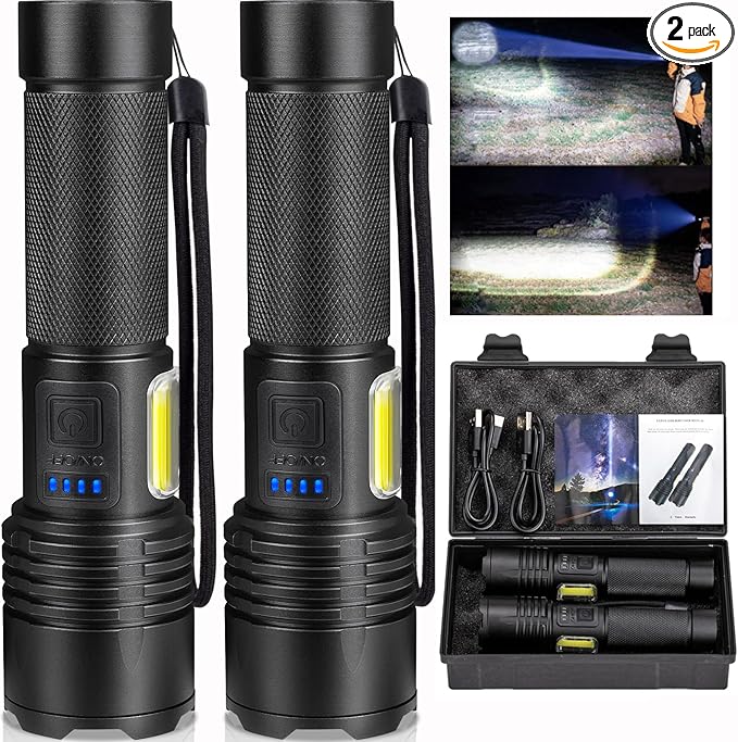 Rechargeable Flashlights High Lumens 2 Packs, 990000 Lumens Super Bright LED Flashlight with 7 Modes & Waterproof, Powerful Flash Light for Home Camping
