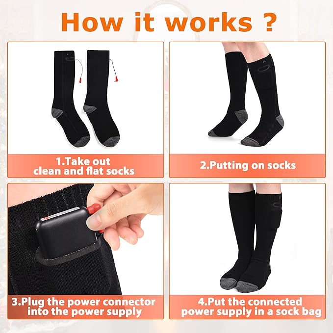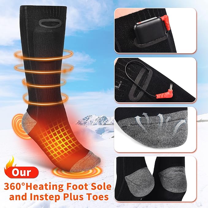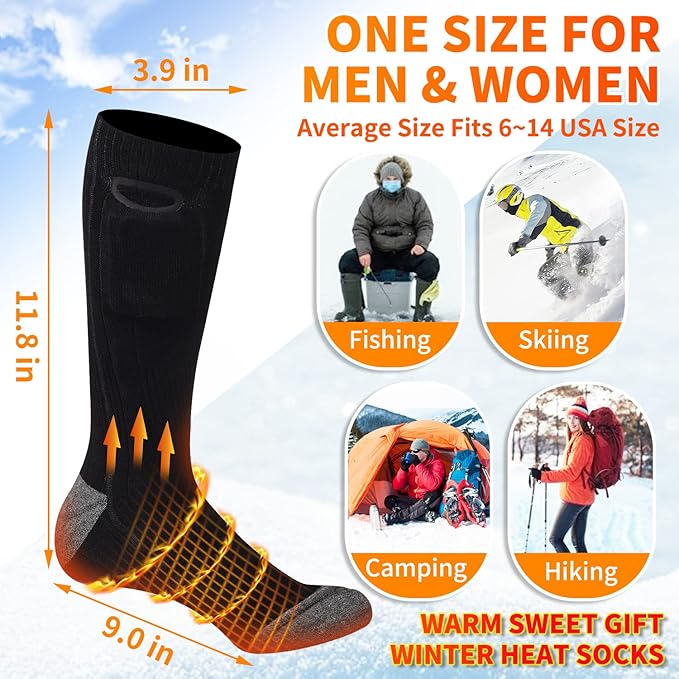 - ◆🥰【Enjoy Winter Sports】Get ready for winter! Cold feet can often take the fun out of any outdoor activity. Heated socks are perfect for many kinds of indoor & outdoor activities in winter such as camping, hunting, skiing, hiking, snowboarding and outdoor work. It is a perfect warm gift for your family and friends in winter. If you have any questions, please feel free to contact us, we'll reply within 12 hours.