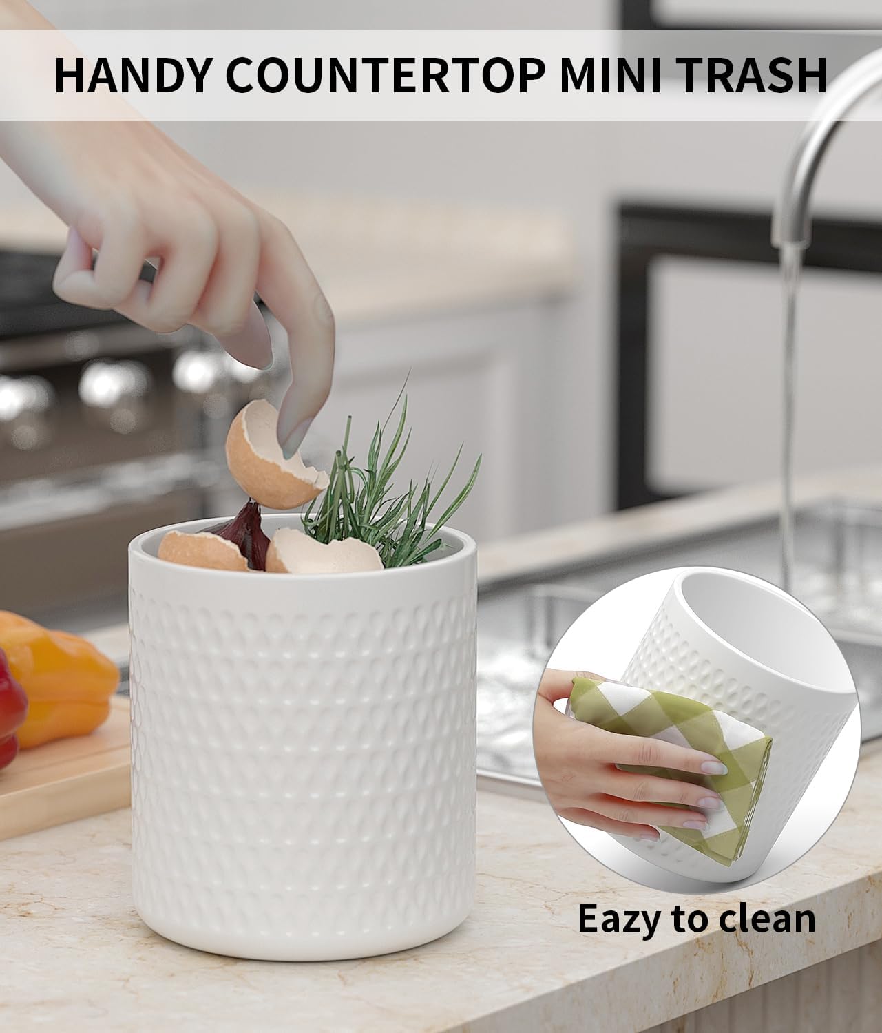 - 【Multi-Functional Utensil Caddy】: This kitchen accessory for your countertop can be used not only for organizing kitchen tools, but also as vases for flowers, makeup brush holders, as ice buckets, office supply organizers, and can seamlessly house coffee pods and stirrers on your bar countertop, or even as a handy countertop mini trash for quick cleanups like cracking and disposing of eggshells and garlic peels