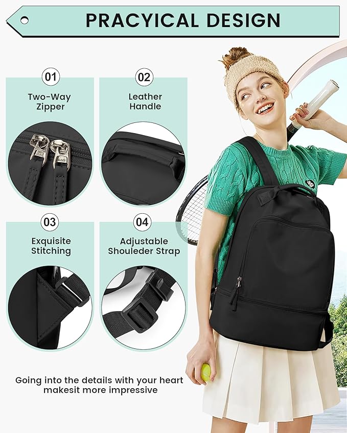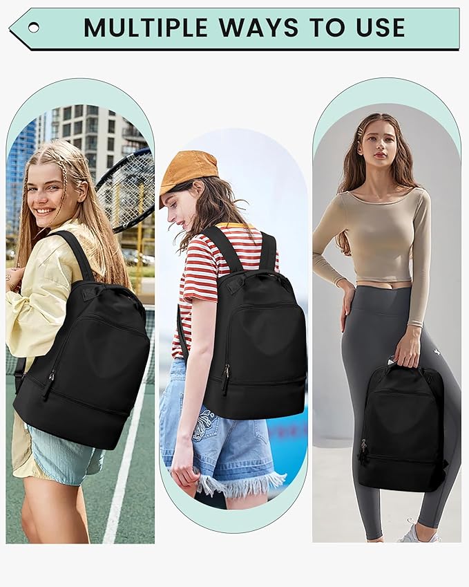 Gym Backpack for Women, Gym Bag with Shoe Compartment, Waterproof Lightweight Sports Yoga Travel Backpack with Wet Pocket, Black