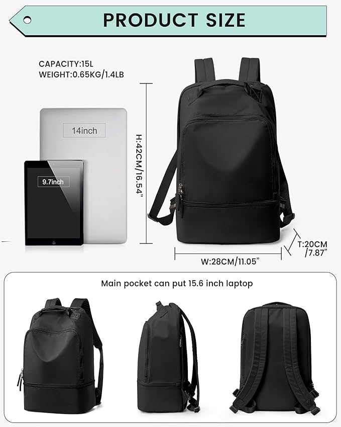 - Separate Shoes Compartment:Designed with convenience in mind, say goodbye to mixing your dirty shoes with your clean clothes. This backpack features a separate shoe compartment, so you can keep your shoes organized and easily accessible. It is convenient for you to replace when you go to fitness, swimming, playing and other sports.